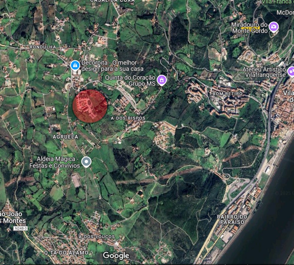 Lote de terreno localizado no Alto da Agruela / ? dos Bispos, rua Alexandre Herculano, freguesia e concelho de Vila Franca de Xira. A ?rea total deste terreno ? de 445,00m2, onde pode construir a sua moradia com capacidade m?xima de constru??o de 316,00m2 e de implanta??o de 126,00m2. A moradia a desenvolver poder? contemplar 2 pisos e mais cave. O logradouro tem uma boa ?rea que pode criar o seu espa?o exterior de lazer.